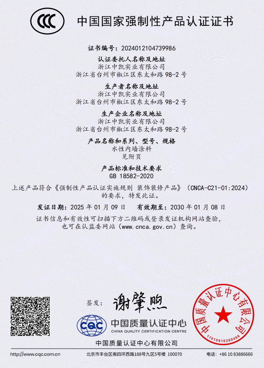 浙江中凱實(shí)業(yè)有限公司是一家由美國杜邦涂料化工集團(tuán)有限公司提供高新技術(shù),與美國杜邦化工集團(tuán)有限公司授權(quán)在中國生產(chǎn)各種建筑涂料的制造企業(yè)。